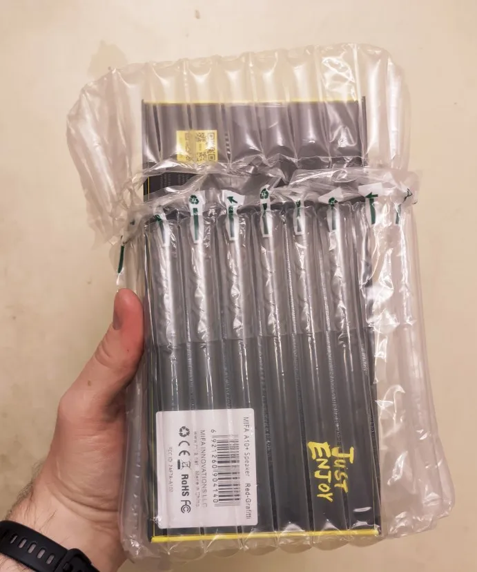 Колонка за свои деньги огонь. Фонит на верхних частотах, но на нижних все прекрасно. Брала до этого тоже мифу, но просто а10. В этой (а10+) намного больше басов. Доставили в дутой упаковке, быстро. Но есть один минус-сама коробка немного помята (на фото). Это не на почте, т.к. упаковка бы не позволила ей так помяться. Было бы все равно, но заказывалось в подарок