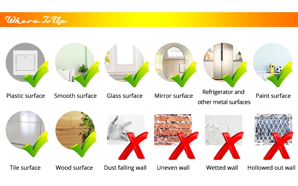 1. Убедитесь, что поверхность, которую нужно прикрепить, является гладкой поверхностью и что есть конвекции, сотканы и морщины. Не прилипайте.