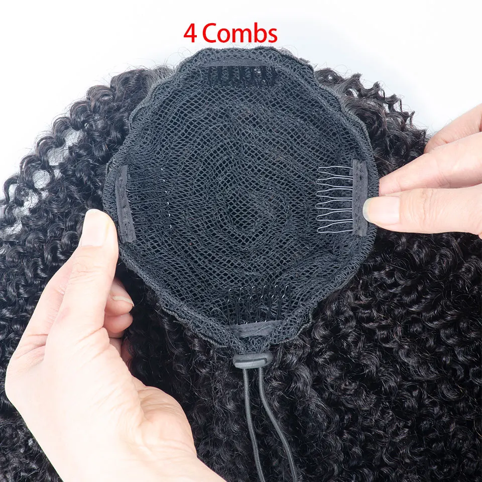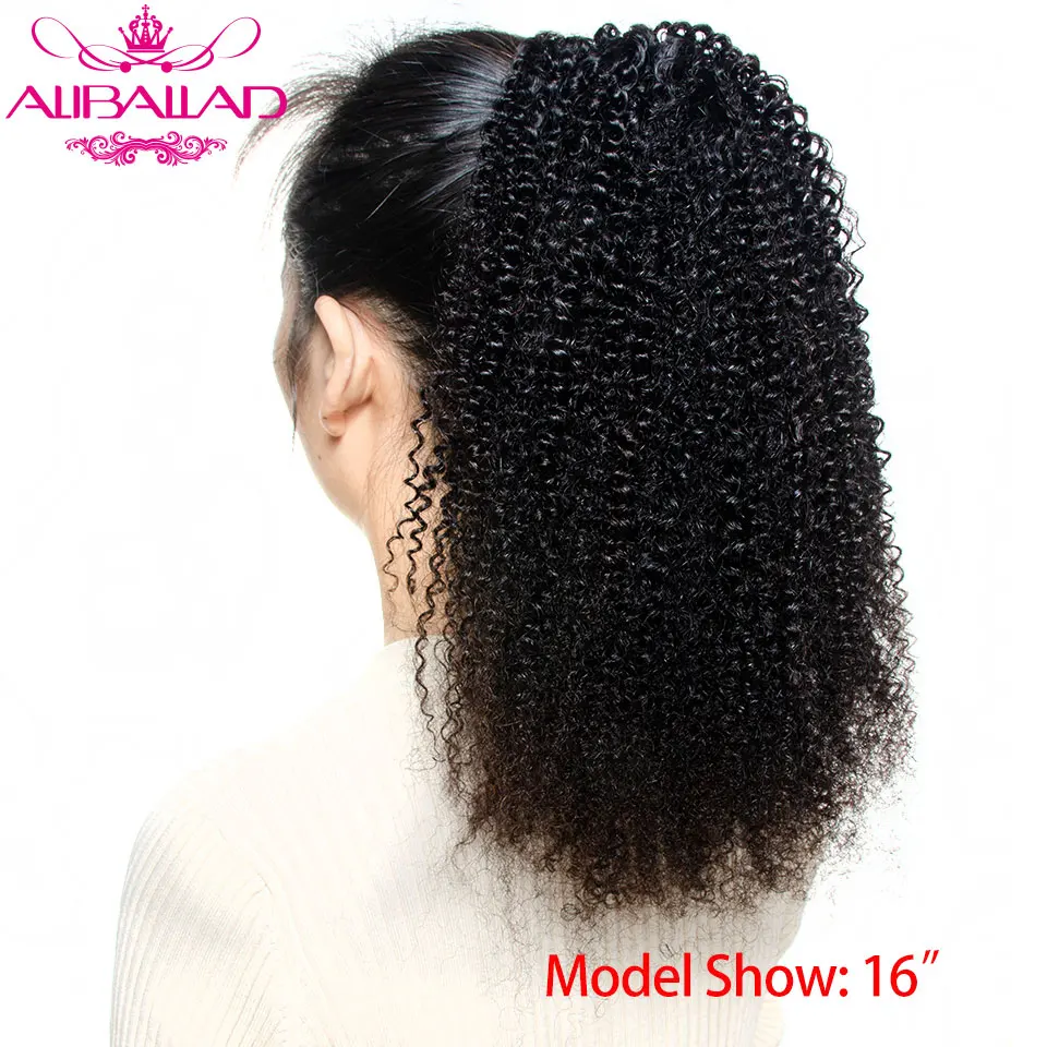 Aliballad афро кудрявый конский хвост 12 14 16 дюймов человеческие волосы Remy монгольские волосы со шнурком хвост наращивание волос