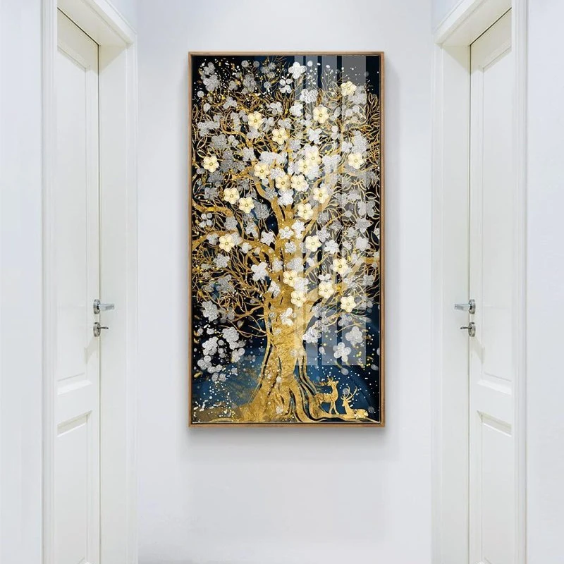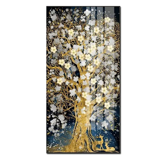 Абстрактные цветы из золотистого дерева, холщовая краска, струящаяся большая краска для оленя, краска для гостиной, скандинавский декор для стен, 3-99