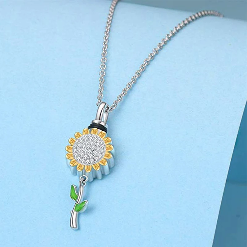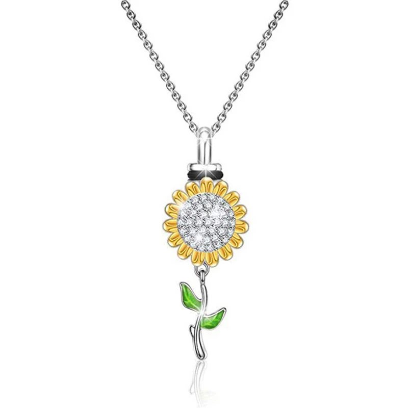 Подсолнух кулон с пеплом ожерелье кулон с мемориальной урной оплеиваемые Стразы ожерелье пепельный Чехол Держатель буквы "помните в моем сердце"