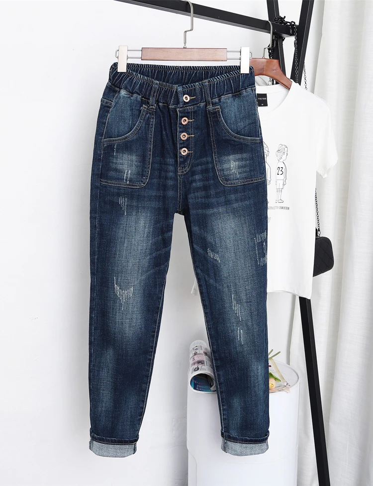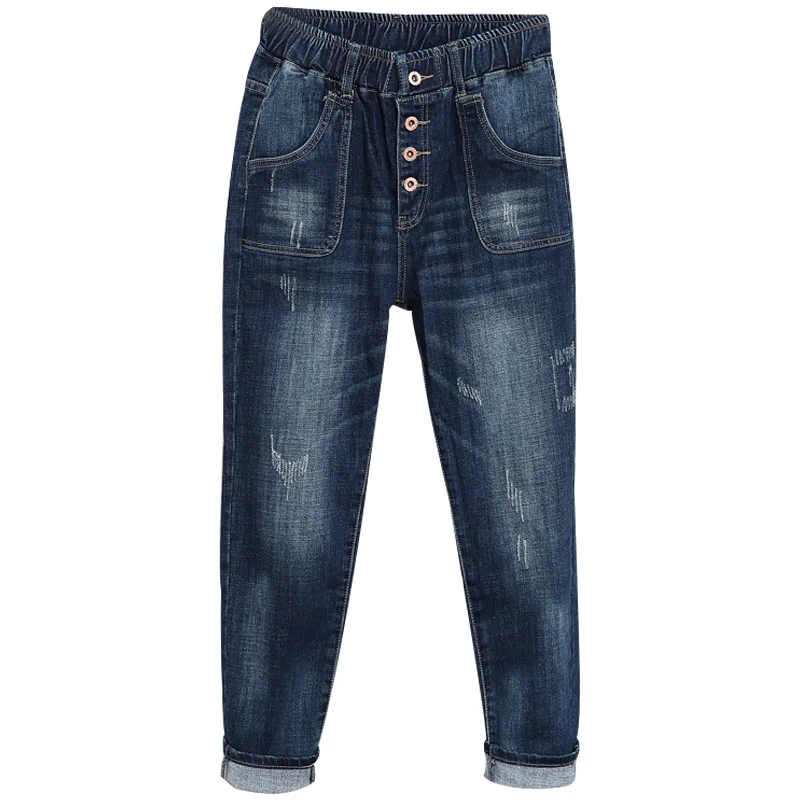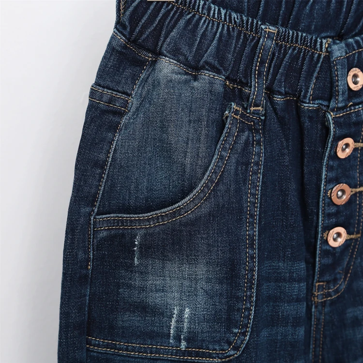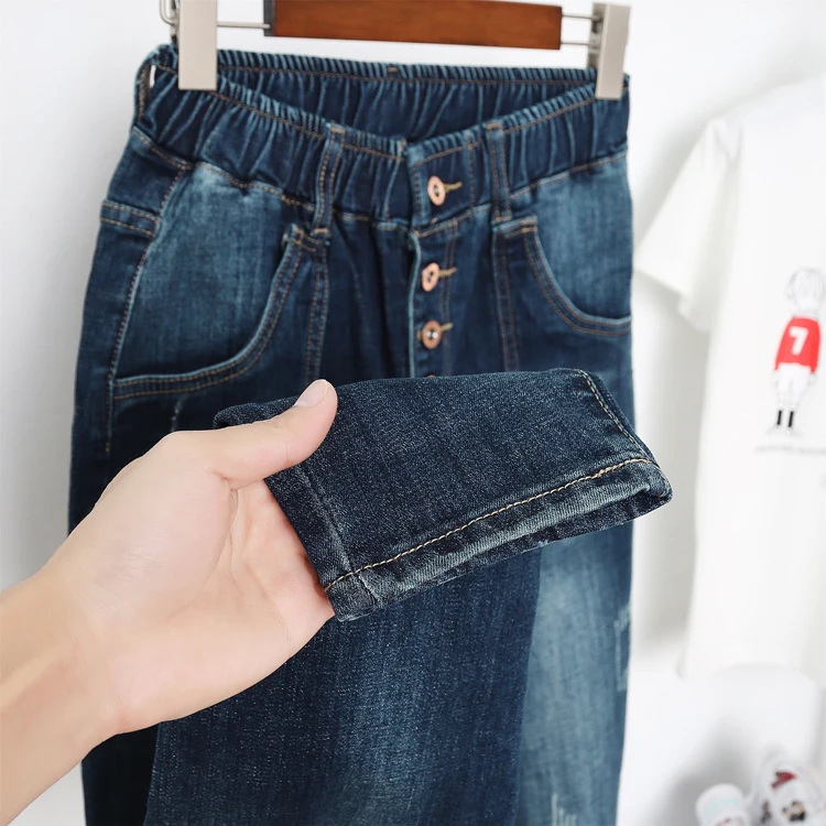 Женские джинсы до щиколотки, мешковатые штаны-шаровары с эластичной талией в винтажном стиле, повседневные джинсы из денима весом 1711 кг, лето 100