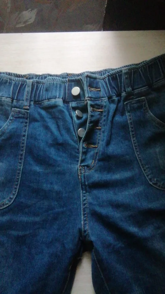 думала будут более плотнее. по размеру хорошо на о.т 100 о.б. 120 на рост 155 полноценная длина. налезут и на большие объемы .на фото продавца пуговицы, на деле же клепки под серебро. а вообще штанишки хорошие. звезду сняла за несоответствие застежки, и что на фото выглядят более плотнее, чем рни есть