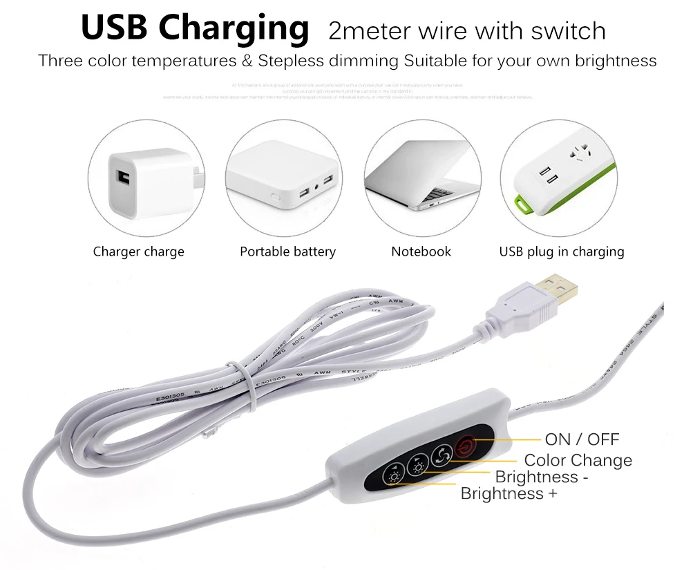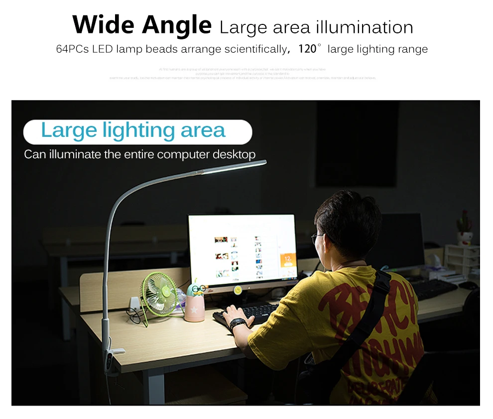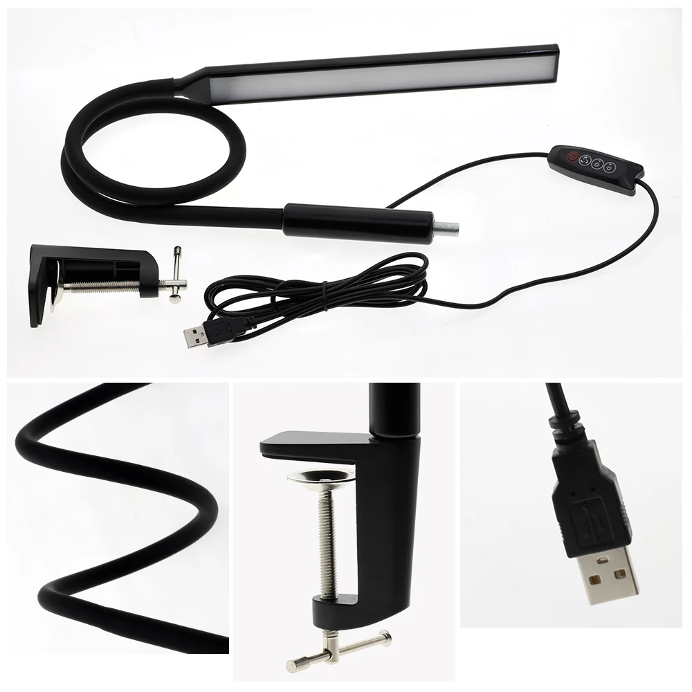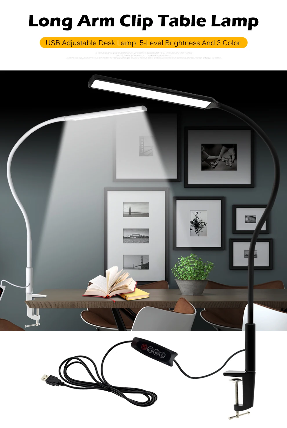 Настольная лампа с длинной рукояткой, Офисная настольная лампа, 64 шт., светодиодный USB светильник, 3 цвета, x5, Dimable Level, защита глаз, регулируемый учебный светильник