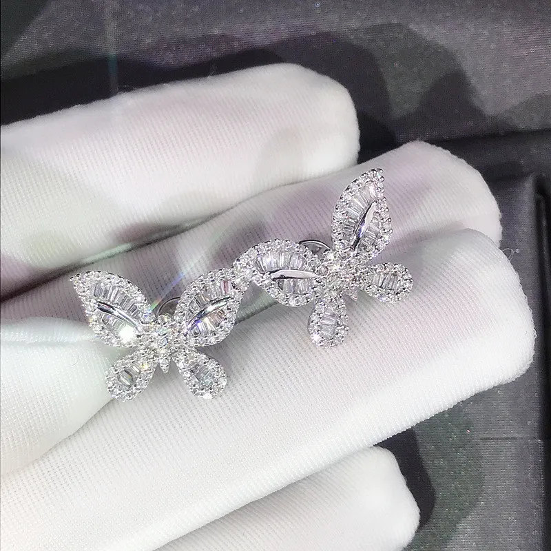 Женские серьги-гвоздики в форме бабочки, с фианитом