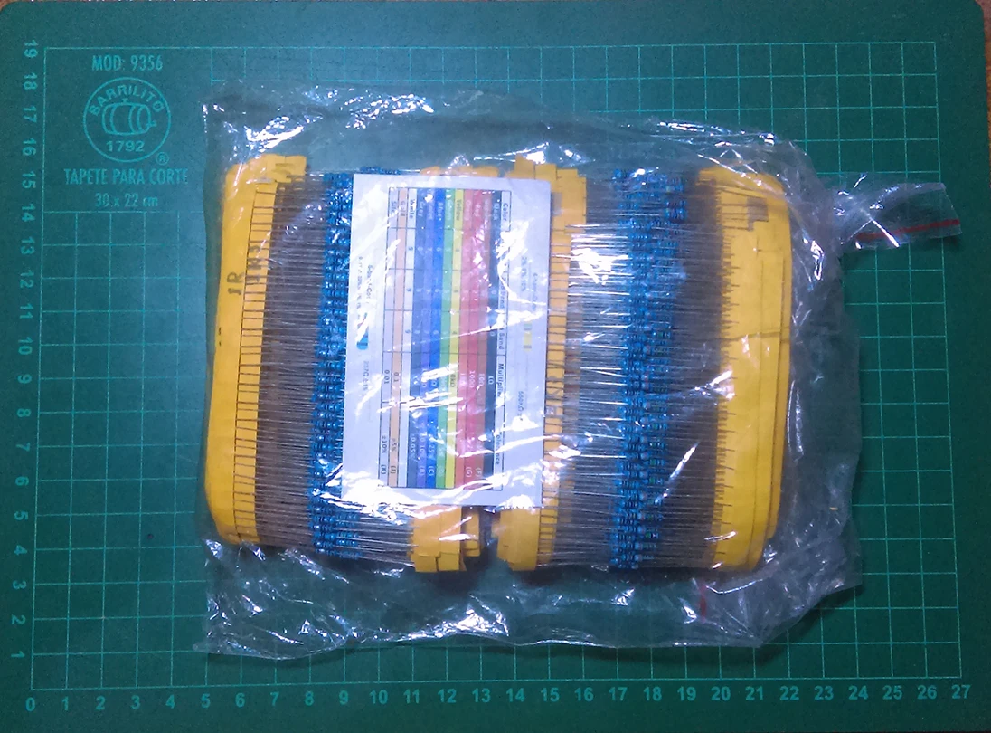 Заказ пришел за 20 дней. Набор резисторов соответствует фото. Минусом можно считать разброс параметров. У некоторых номиналов разброс доходит до 5%, но в общей массе от 1% до 2%. Кроме того, диаметр выводов равен 0.35 мм, в то время, как у резисторов типа МЛТ-0.25 из СССР диаметр выводов был 0.55 мм. Вот такая экономика....