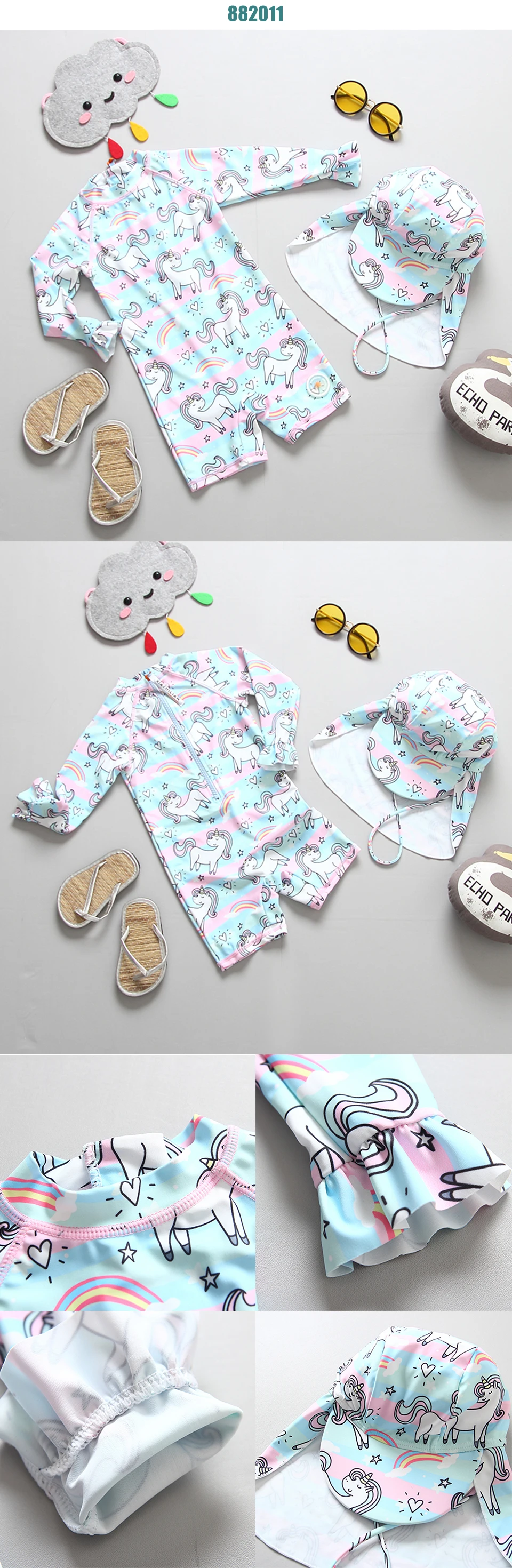 Детский купальник для девочек с единорогом, купальный костюм для малышей с длинным рукавом и защитой от ультрафиолета 2020, купальный костюм для маленьких девочек, купальные костюмы