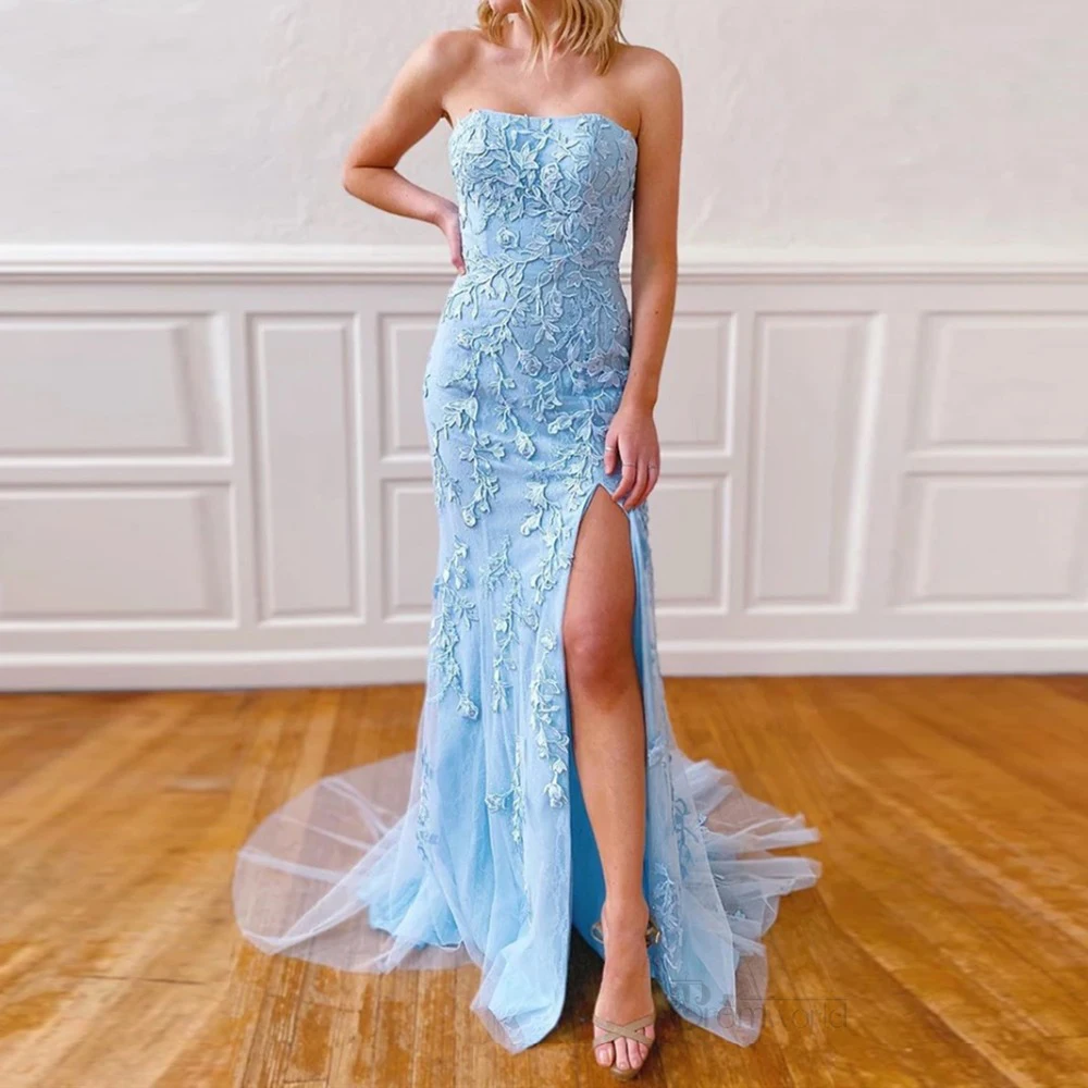 LORIE Небесно-Голубое Кружевное платье для выпускного вечера, длинное сексуальное официальное вечерние платья русалки фатиновые платья для выпускного вечера без рукавов с высоким разрезом
