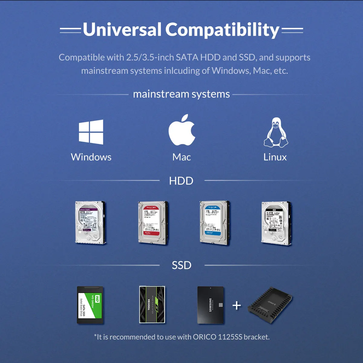 ORICO 5,5-дюймовая док-станция для жесткого диска 5 ГбитТБ, USB 3,5