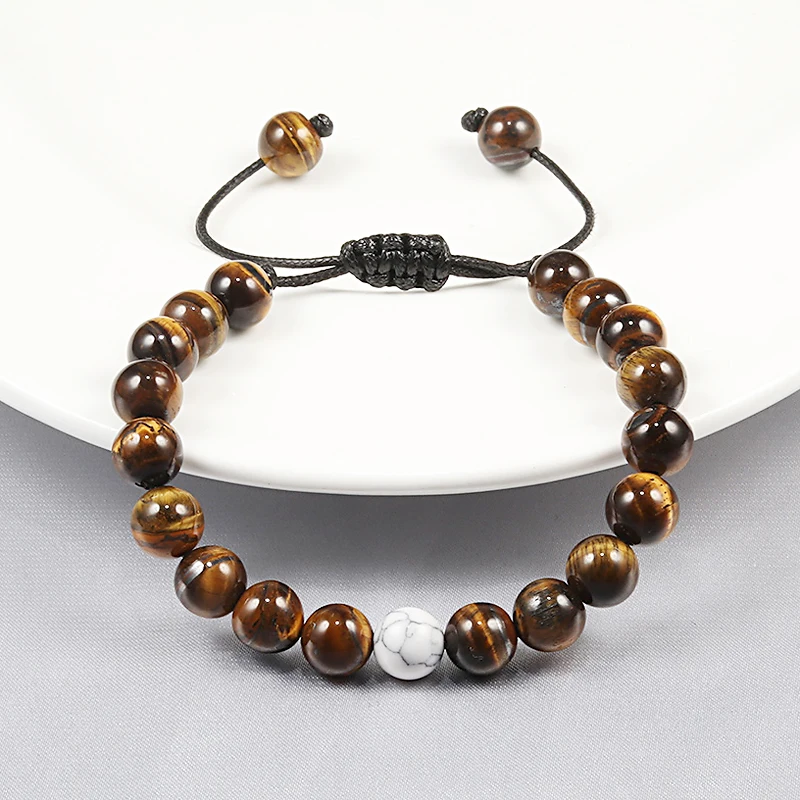 Натуральный камень тигровый глаз бусы браслет плетеная веревка Регулируемый Шарм Исцеление Баланс йога браслет для медитации для мужчин ювелирные изделия