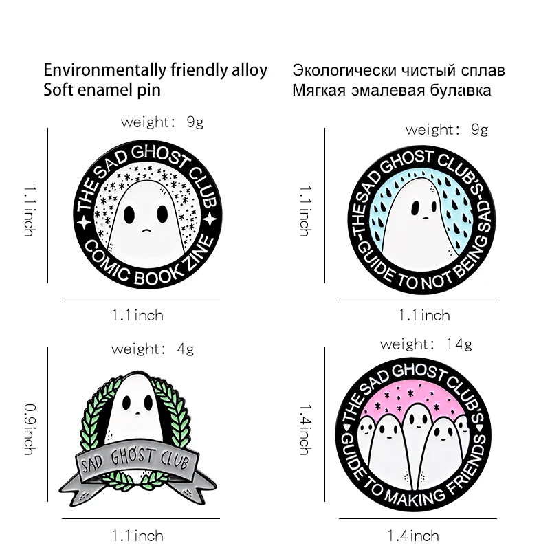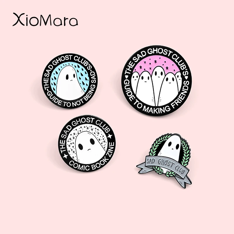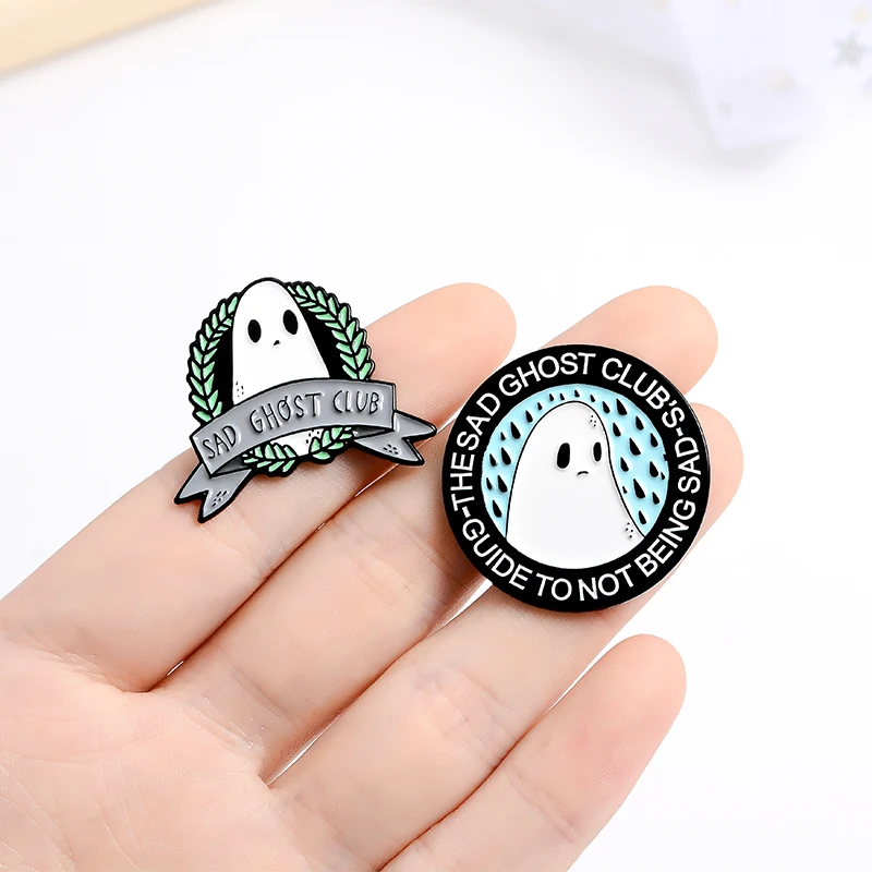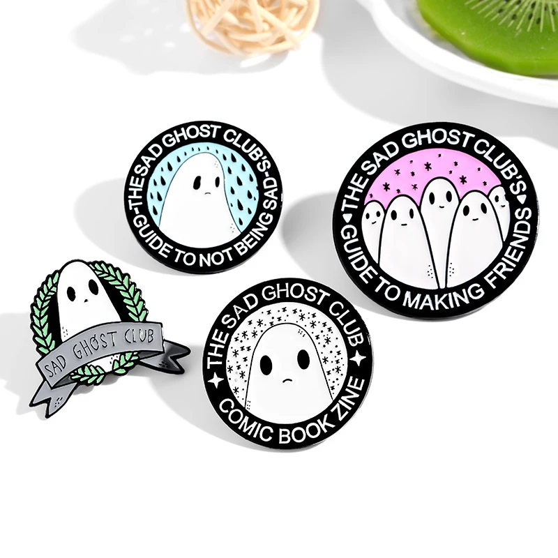 Эмалированные булавки Sad Ghosts, значок для членов клуба, поп-панк, комиксы, руководство по изготовлению ювелирных украшений, броши для друзей, булавка с отворотом для друзей