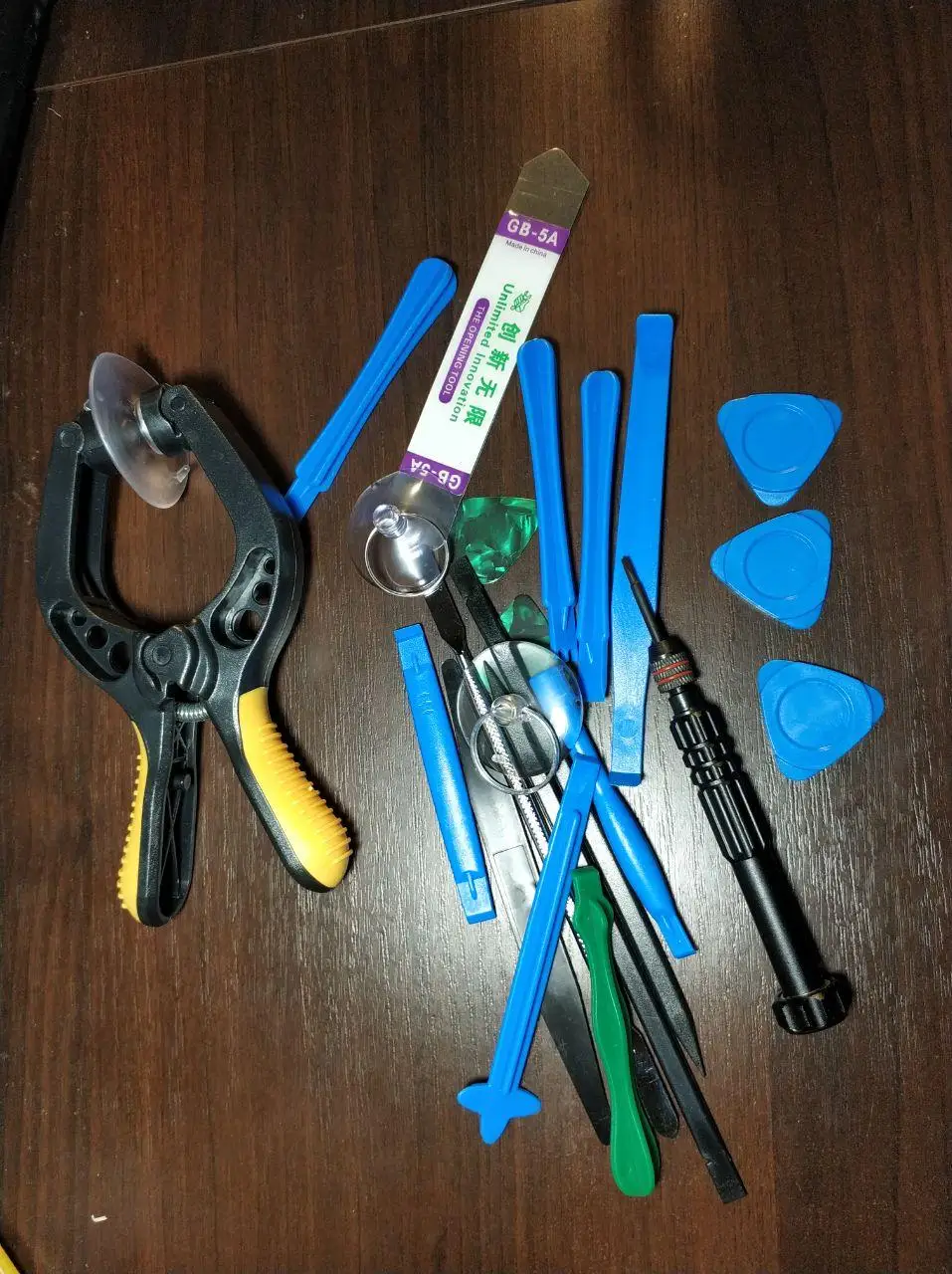 Хороший комплект для ремонта телефона. До сих пор хорошо работает для замены экрана моего iPad.