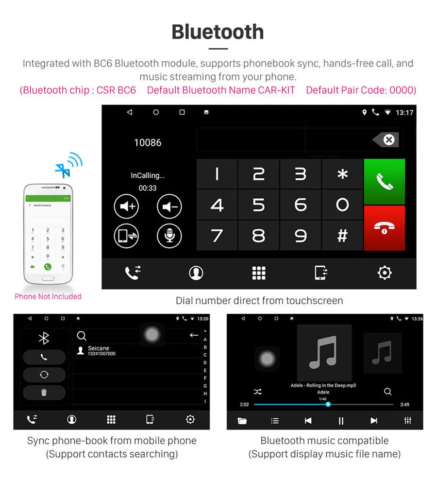 -Управление музыкой по Bluetooth: Да, воспроизведение/пауза/Предыдущий/следующий