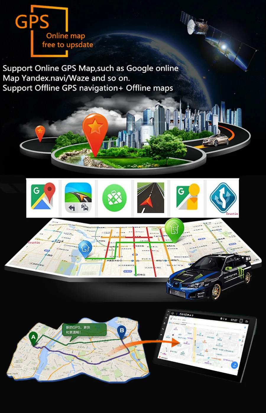 -Поддержка карт: IGO, Sygic, Google Map и т. Д.