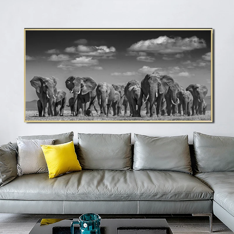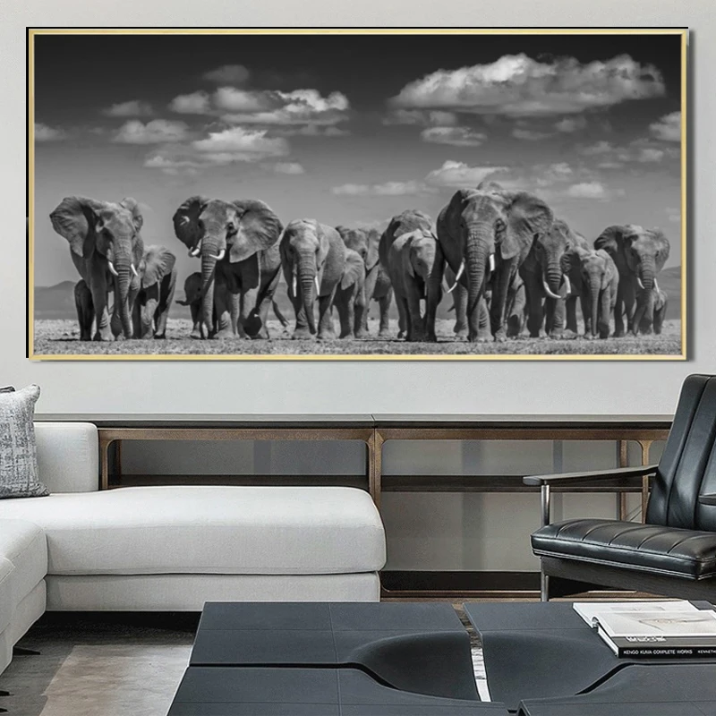 Муту, современные животные, постеры и принты, Картина на холсте, африканский слон, стадо, картины для гостиной, Декор, без рамки