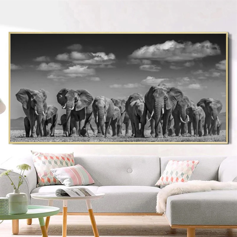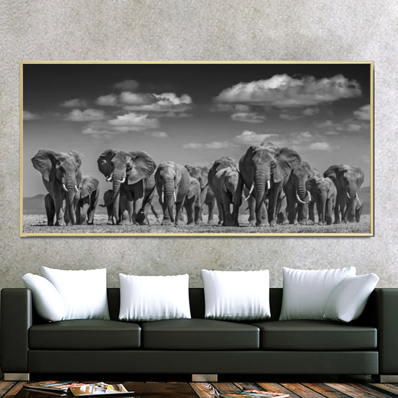 MUTU современные животные постеры и принты настенная Картина на холсте Африканский Слон стадо картины для гостиной Декор без рамки