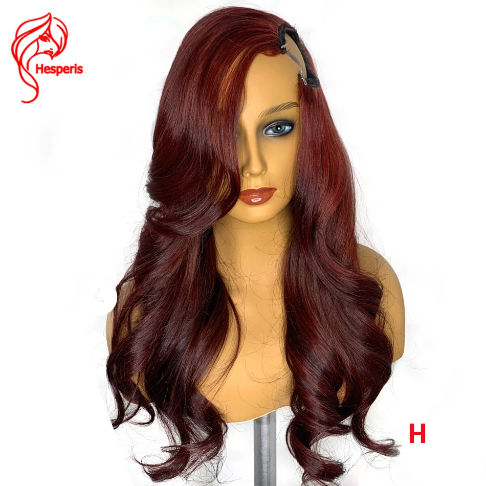 Hesperis 99J U-образные парики, человеческие волосы для женщин, бразильские волосы Remy, боковые U-образные парики, 180 плотность, человеческие волосы, парики, объемная волна