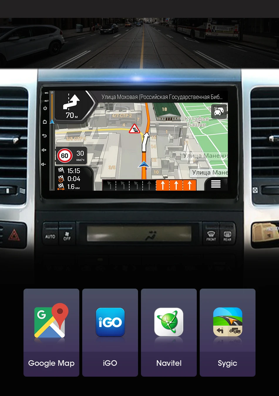 Поддерживает почти все приложения карты. Перед отправкой ваших любимых продуктов, мы установим для вас последнюю автономную карту вашей страны, и карта будет обновляться через регулярные промежутки времени. Конечно, вы также можете использовать онлайн-карты.