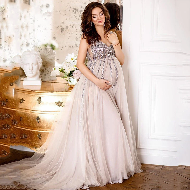 LORIE вышитые бисером V-образным вырезом для беременных Вечерние платья на заказ женское 2020 мягкое Тюлевое ТРАПЕЦИЕВИДНОЕ платье для беременных