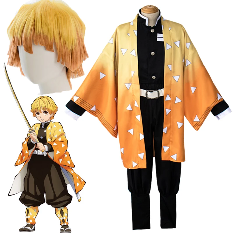 Agatsuma Zenitsu Косплей Костюм Аниме Demon Slayer Kimetsu no Yaiba Zenitsu Agatsuma косплей полный костюм и парик