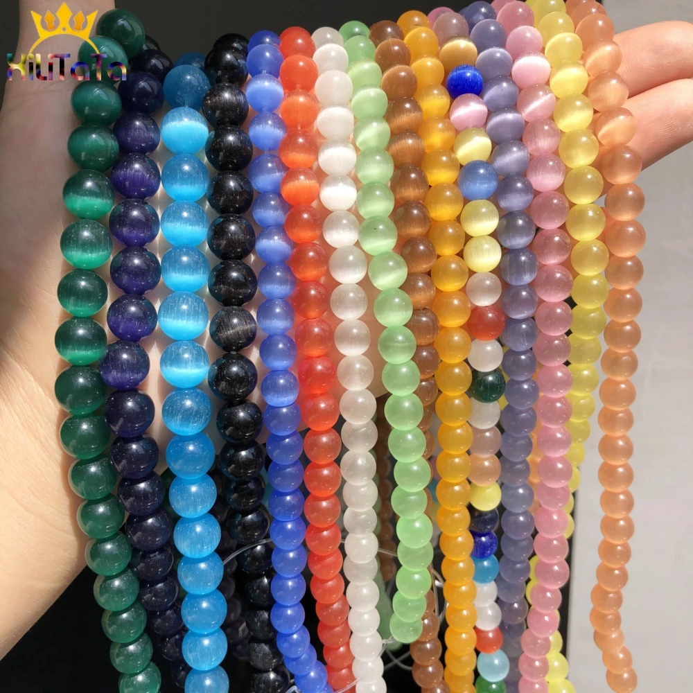 Натуральный опал, разноцветные Круглые бусины кошачий глаз, незакрепленные бусины для изготовления ювелирных изделий сделай сам, аксессуары для браслетов, размер на выбор 4, 6, 8, 10, 12 мм