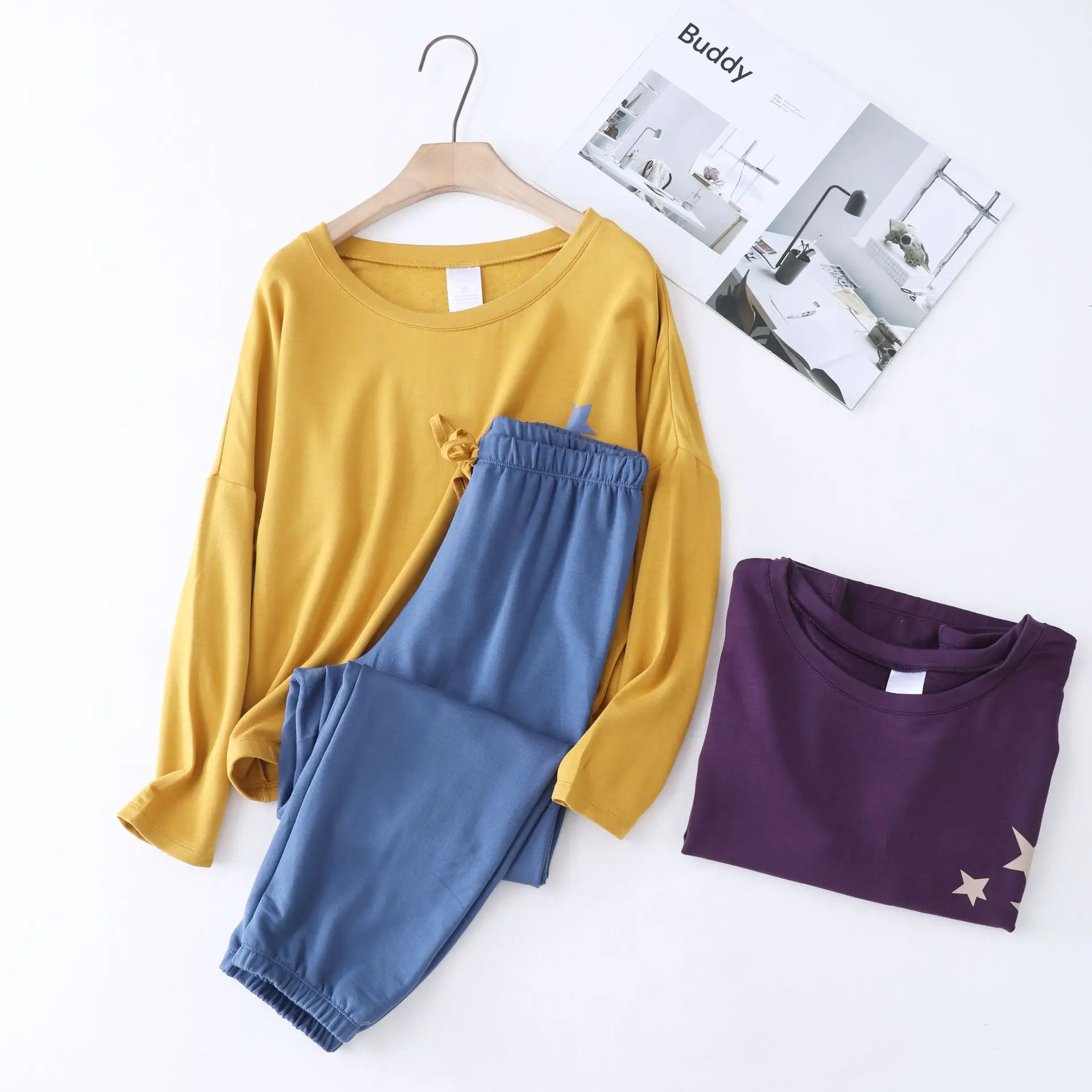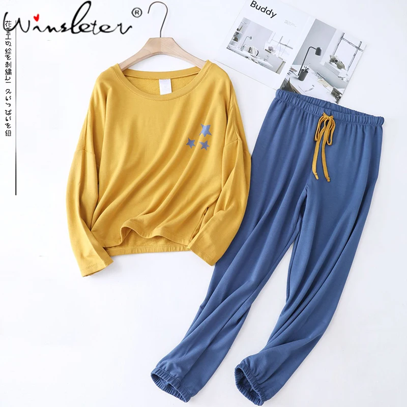 Теплый Женский мягкий пижамный комплект из 2 предметов, комплект одежды для сна, Повседневная простая вязаная эластичная осенне-зимняя повседневная домашняя одежда P05410B
