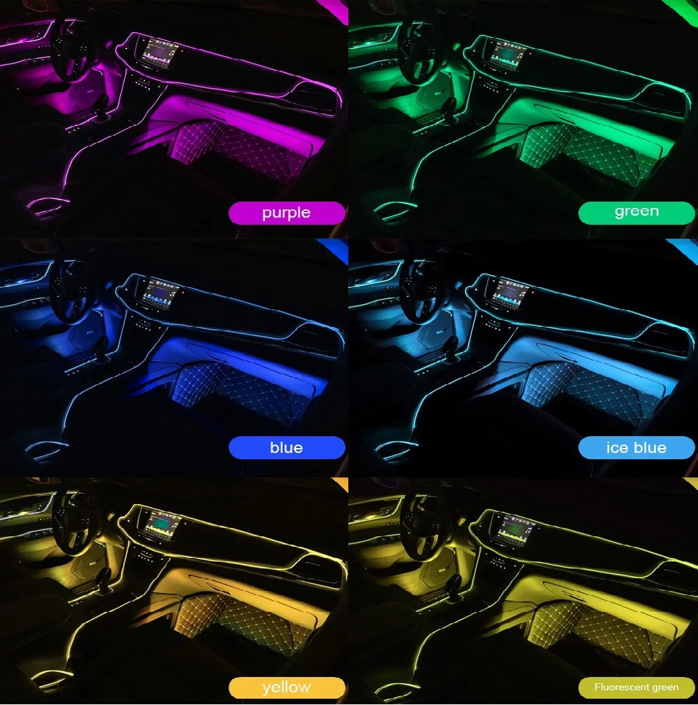 Светодиодная лента для салона автомобиля, декоративная Гибкая неоновая лампа с приводом сигарет EURS, 1 м, 2 м, 3 м, 5 м