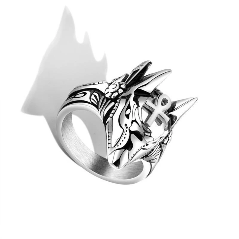 Мужскоеженское кольцо в стиле панк, с египетским крестом Анубиса, с головой волка, ювелирные украшения в стиле ретро
