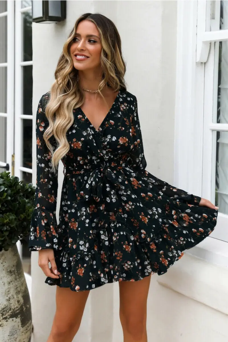Женское платье с запахом, Осеннее цветочное мини-платье в стиле бох...