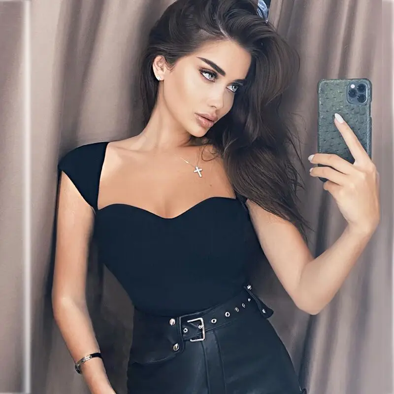 Сексуальная Женская футболка с квадратным вырезом и коротким рукаво...
