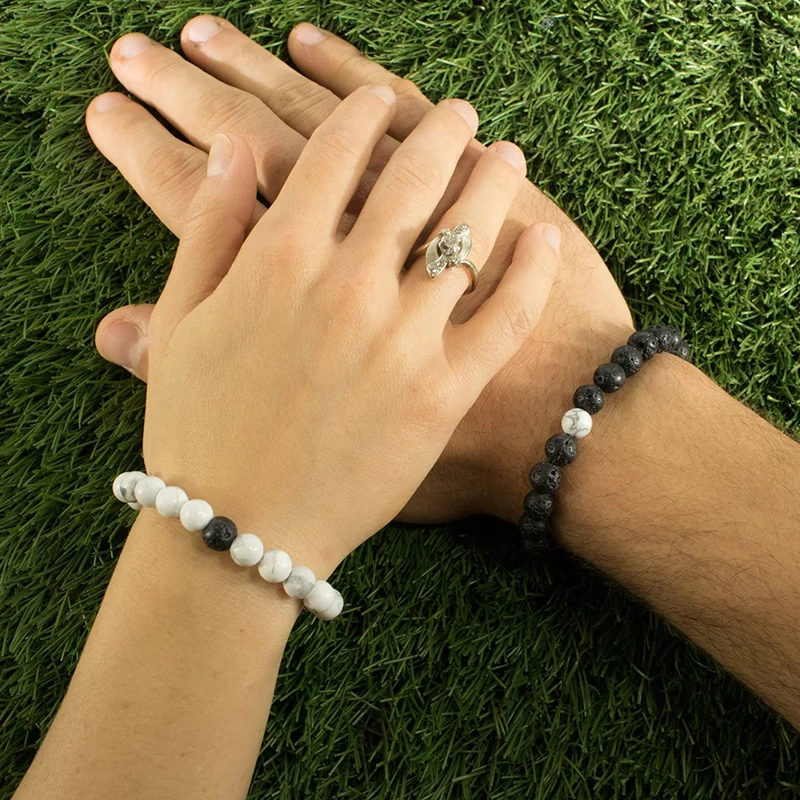 2 шт.компл. мужские браслеты с бусинами тигровый глаз, классические браслеты из натурального лавового камня белого и черного цвета YinYang для пар, браслет для женщин