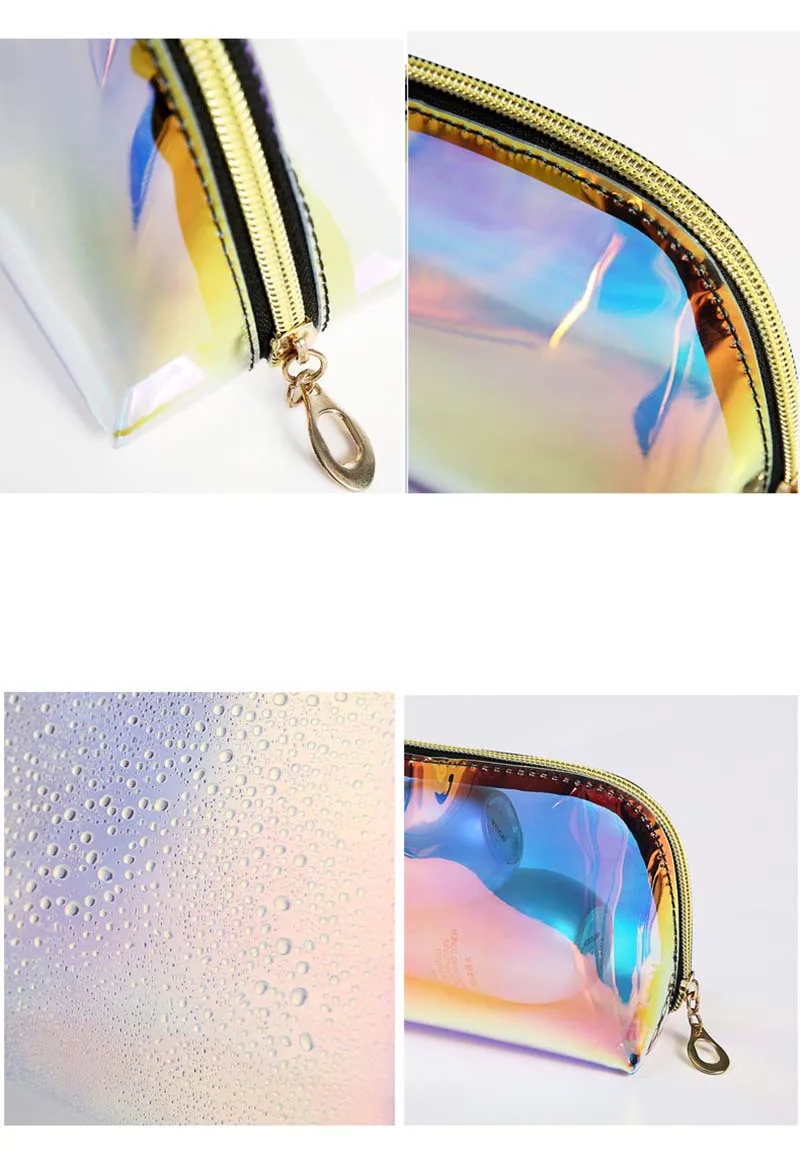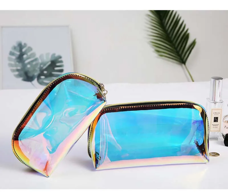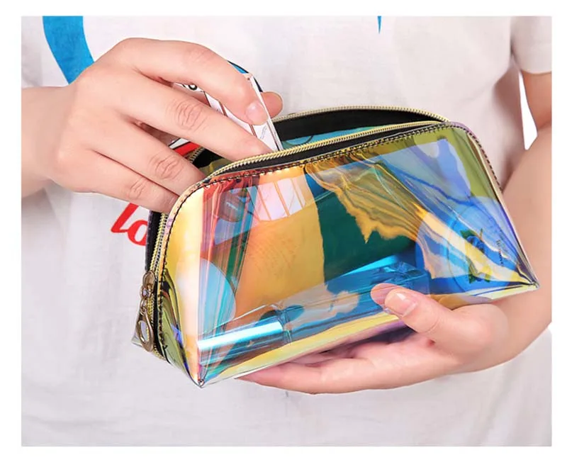 Модный Лазерный женский чехол для макияжа, косметички, прозрачный косметический мешочек, Женская Желейная сумка, портативный органайзер для косметики