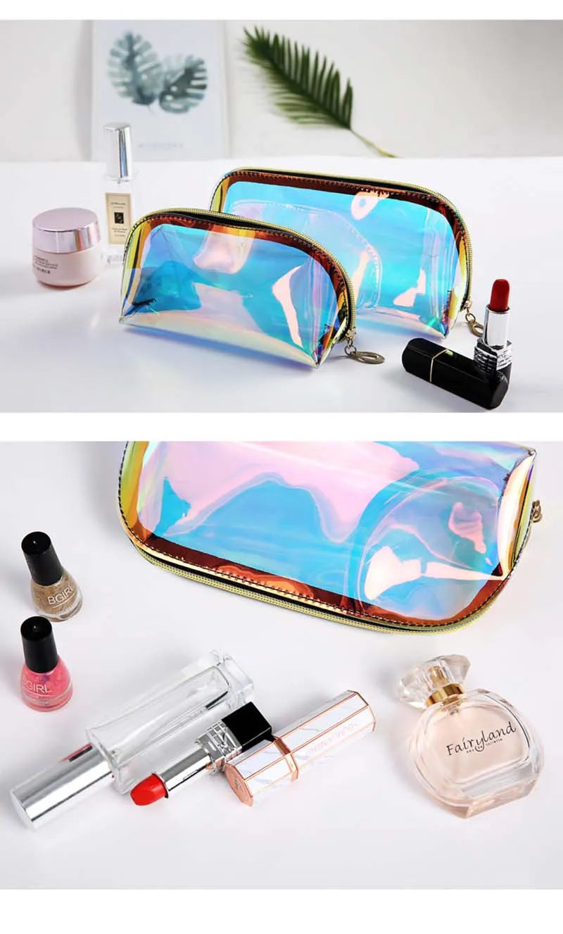 Модный Лазерный женский чехол для макияжа, косметички, прозрачный косметический мешочек, Женская желеобразная сумка, портативный органайзер для макияжа