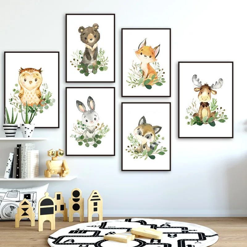 Мультяшный медведь олень лиса планшетофон для детской стены Искусст...