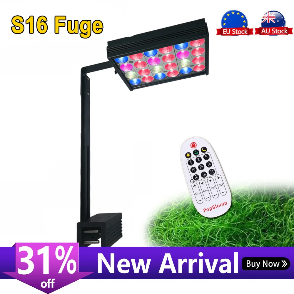 Светодиодный светильник для аквариума PopBloom, лампа для заправки растений, фильтр для водорослей, прибежище для морских водорослей, аквариума, 16 г, 30 Вт