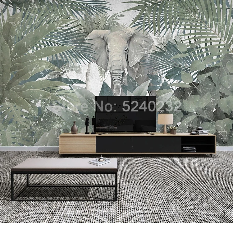 3d-фотообои на заказ, Настенная картина с изображением тропических растений, животных, слона, пейзажа, масляной живописи, столовой, гостиной, дивана, фона под Телевизор