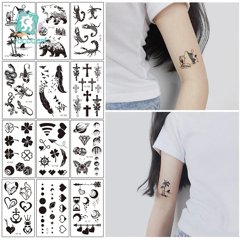 Водостойкая Временная тату-наклейка Rocooart маленького размера, перо, животное, флэш-тату, рука на руку, боди-арт для женщин и мужчин