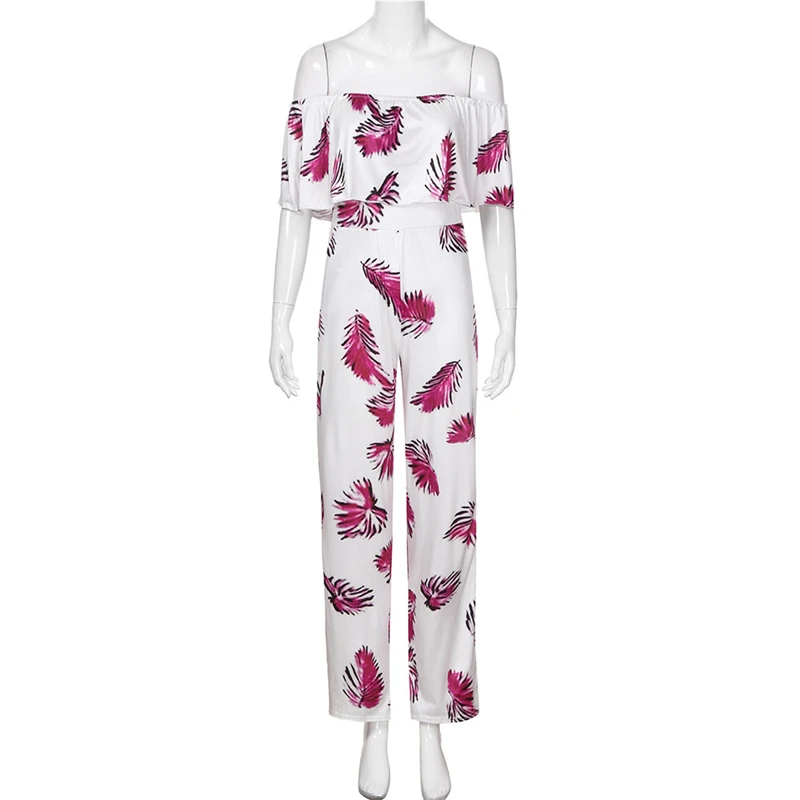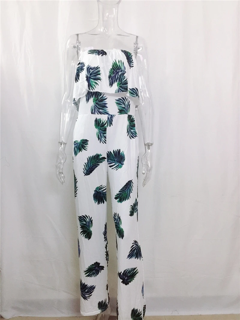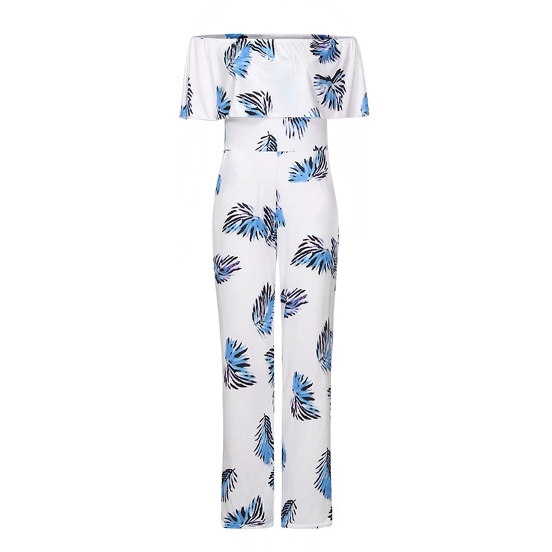 Комбинезон женский с открытыми плечами, винтажный Повседневный свободный пляжный комбинезон с цветочным принтом, с листьями, для вечеринки