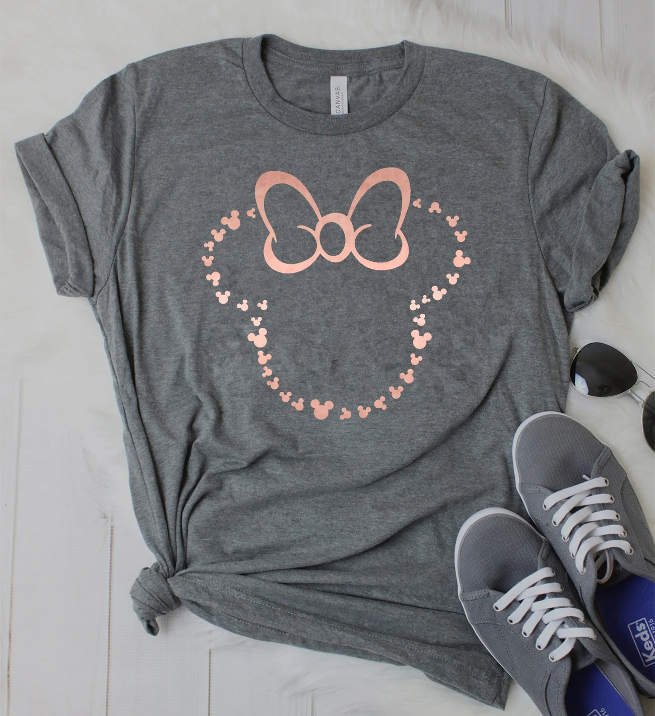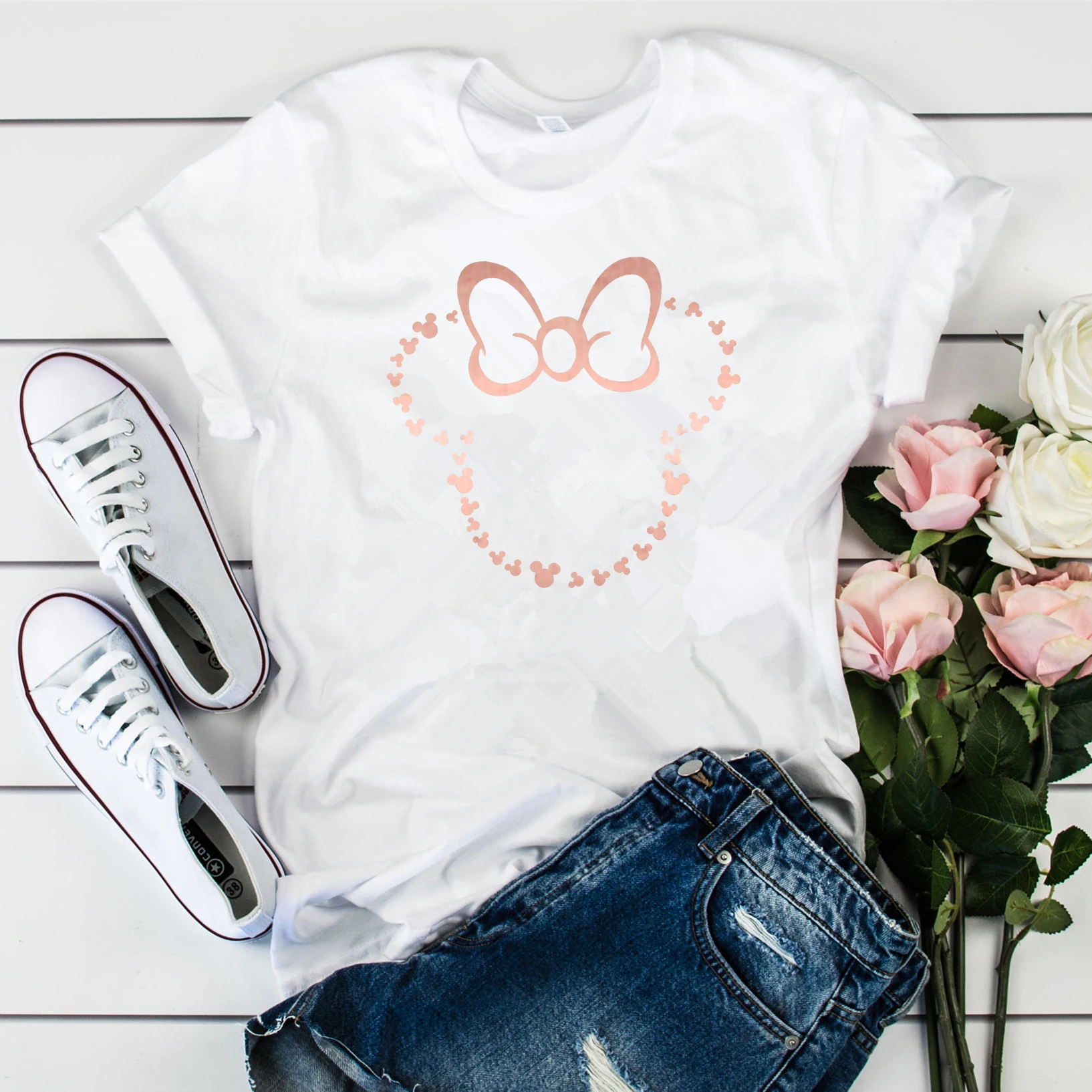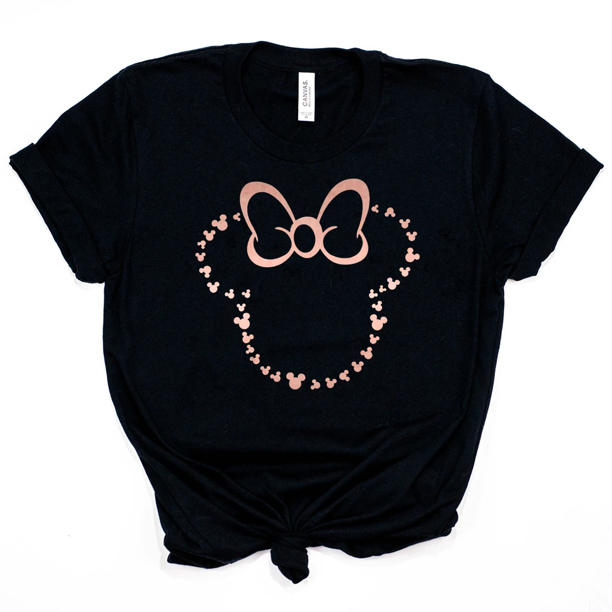 2020 розово-Золотая Футболка с Минни, милая футболка с рисунком Минни, женские одинаковые рубашки для всей семьи, милые праздничные футболки