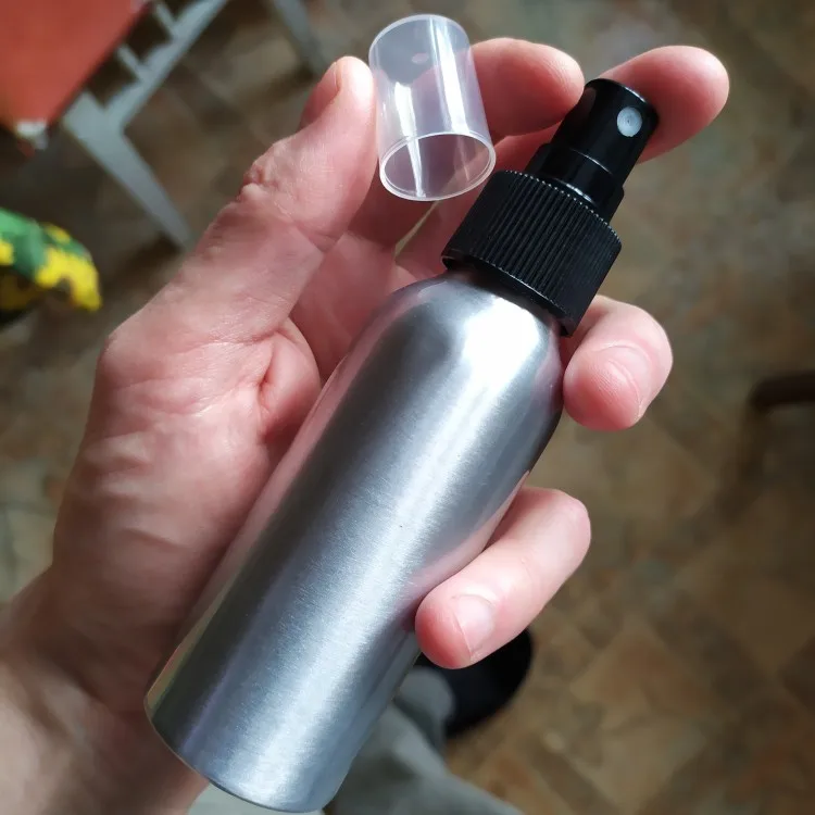 Пришла быстро один бок примят. Не уверен что на почте есть чем примять алюминевую колбу.. соответствует описанию. Брал для спирта, антисептик.. распыляет хорошо.