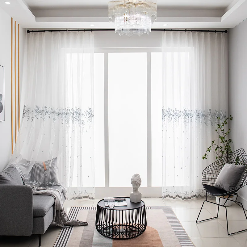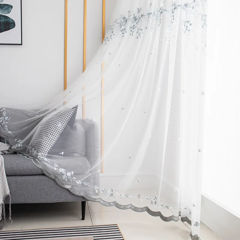 Пасторальная прозрачная занавеска с цветочной вышивкой для гостиной, тюль с драпировкой, спальни, окна, серая вуаль, занавеска для кухни S041 C
