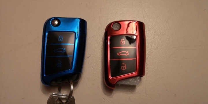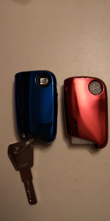 Так же, как на фото. Тот же синий блеск, я думал, что это жесткий пластик, и это мягкий силиконовый тип, отличный белый для ключа от машины. Я люблю это. Я закажу еще один для копии ключа.