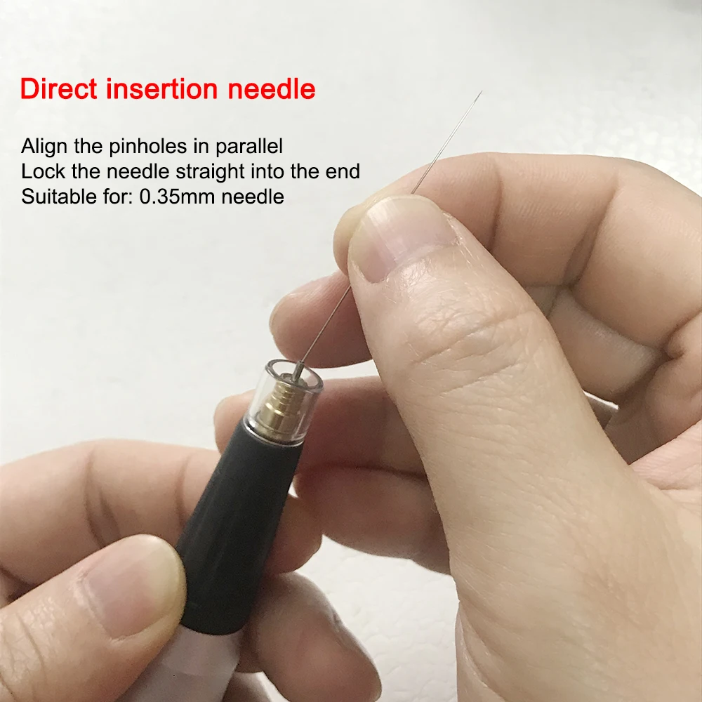 2. Закрутите удерживающий наконечник, и вы увидите игольную трубку.