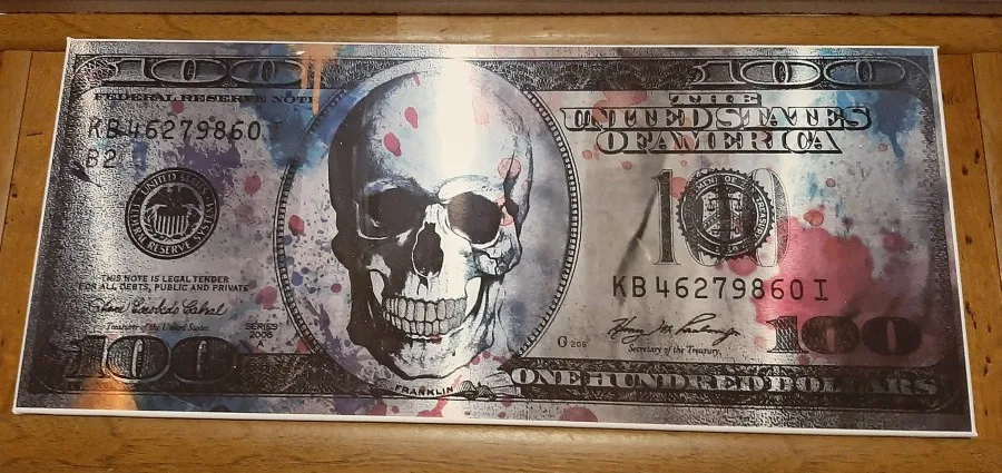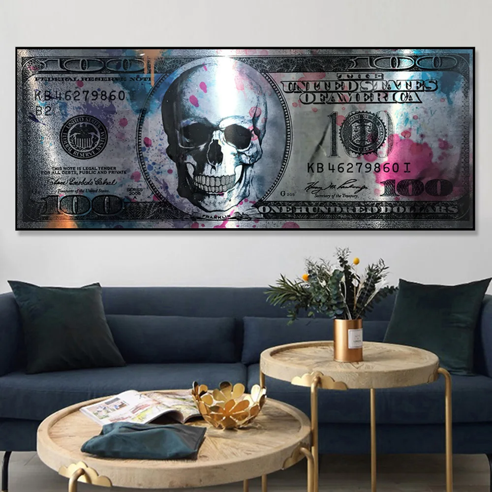 Плакат на холсте с изображением доллара, черепа, 100 долларов