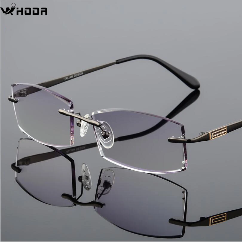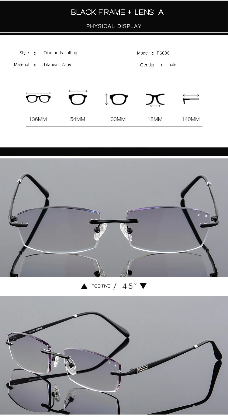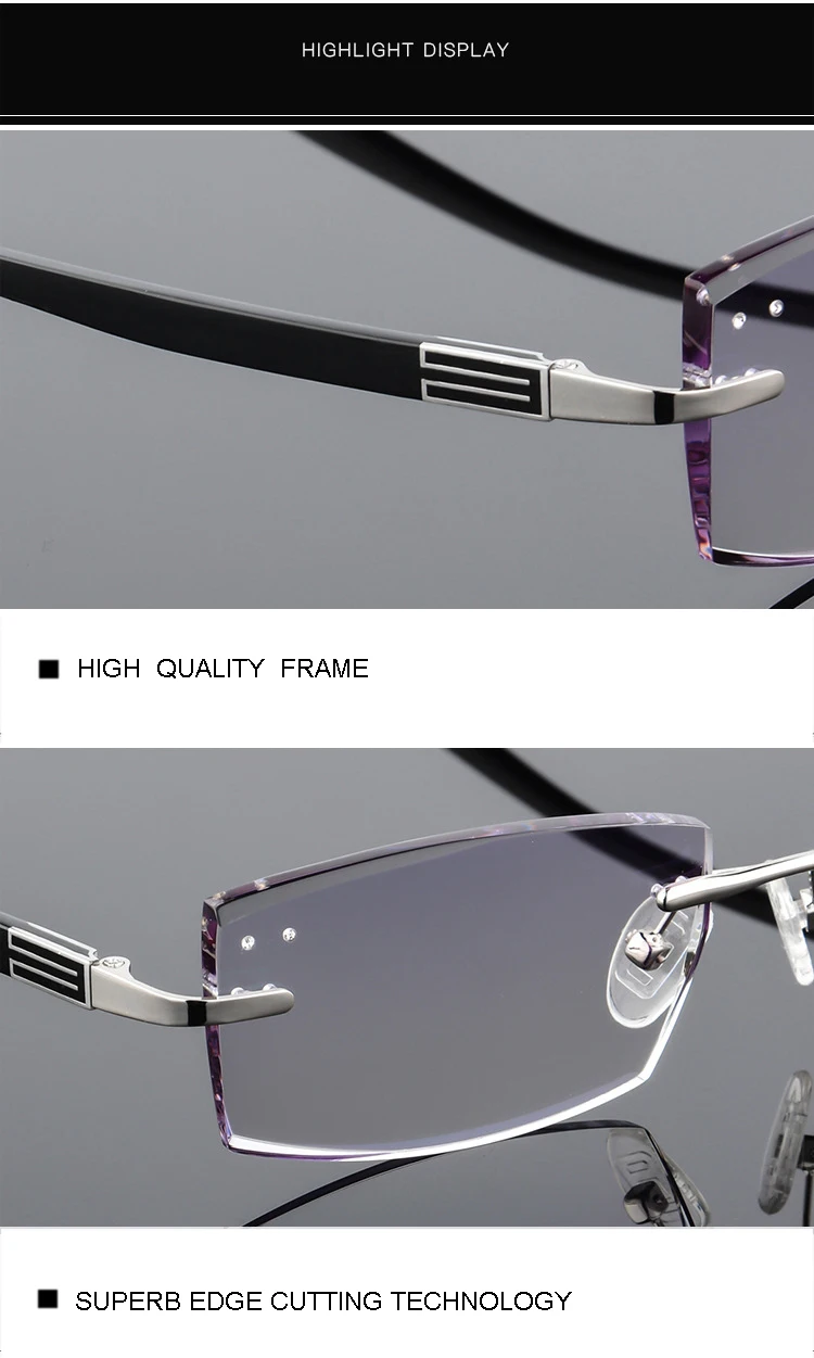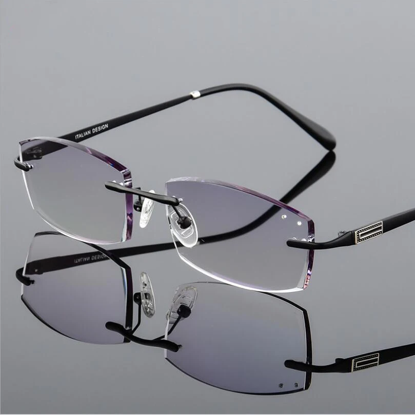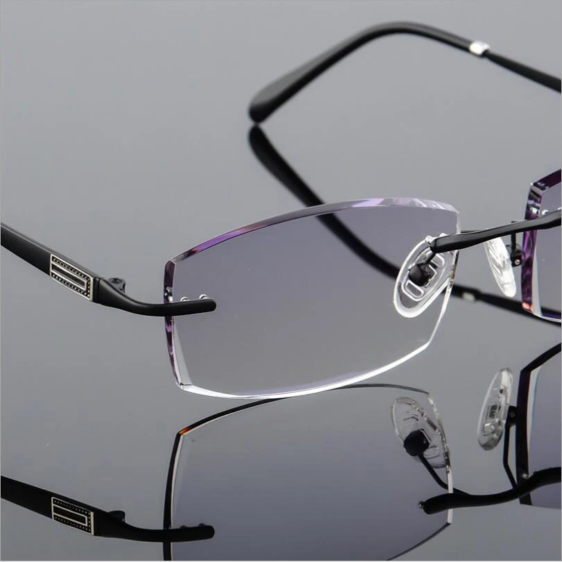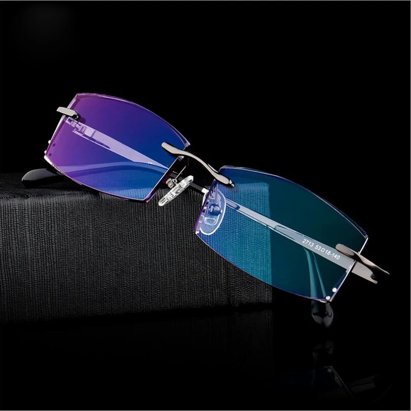 титановые мужские Алмазные обрезные очки без оправы, деловые безрамные очки с защитой от синего света для близорукости F6636