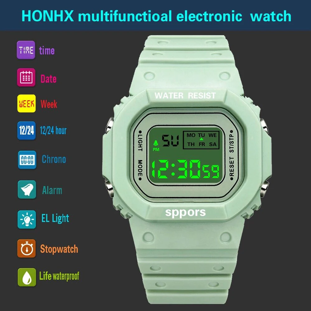 Светодиодный светильник, цифровые часы для мужчин, силиконовые многофункциональные женские и мужские спортивные часы, электронные студенческие мужские часы, Прямая поставка