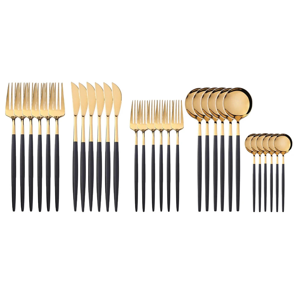 Набор столовых приборов из нержавеющей стали, 30 шт., 1810 дюймов, черные, с золотым ножом, десертная вилка, ложка, столовая посуда, набор столовых приборов