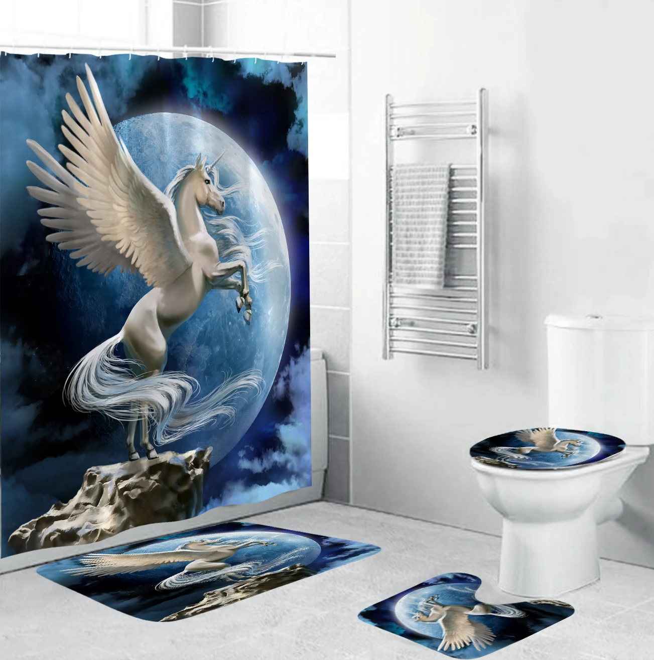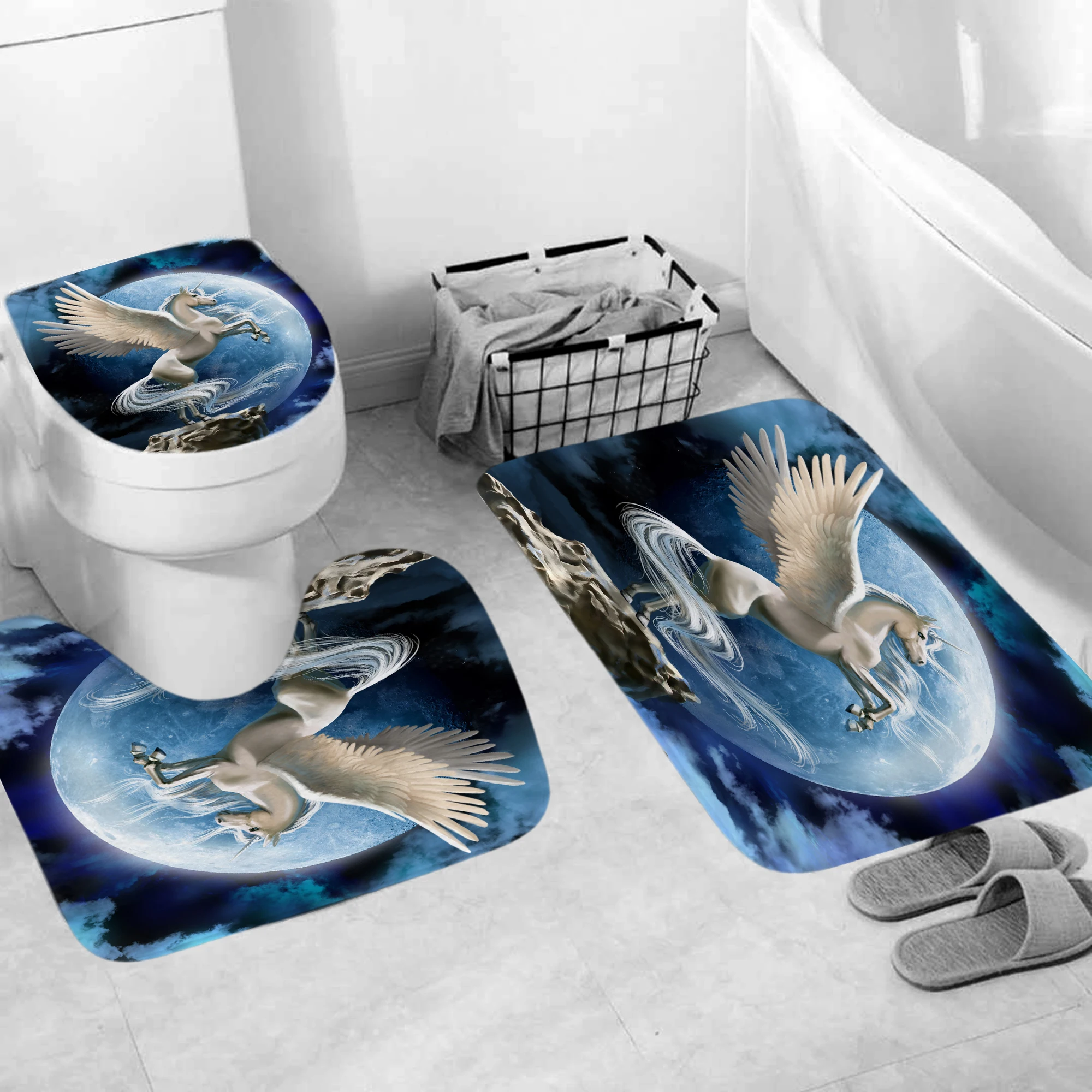 Тканевая занавеска для душа с единорогом под луной s Pegasus занавеска для ванной Противоскользящие коврики Крышка для туалета Набор ковриков для ванной с крючками