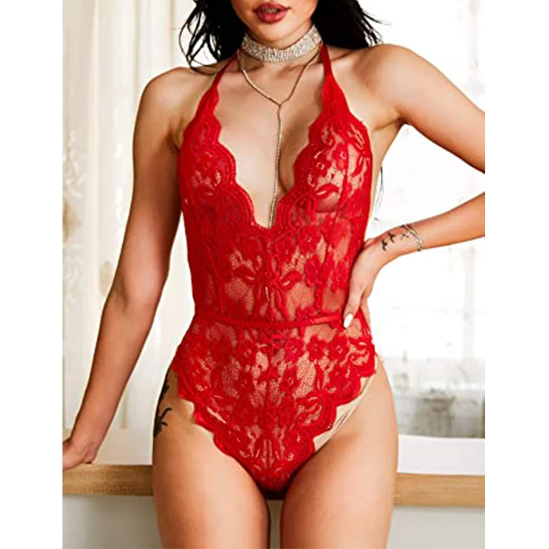 Женское нижнее белье, цельный женский кружевной комплект с бюстгальтером с глубоким V-образным вырезом, горячее эротическое сексуальное нижнее белье, прозрачный комплект из бюстгальтера и трусиков