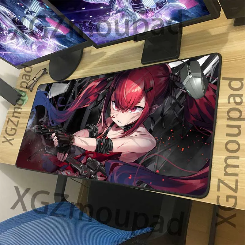 Большой игровой коврик для мыши XGZ на заказ с красными волосами, с Черным Замком, для девушек, на передней линии, манга, ПК, Настольный коврик, нескользящий коврик